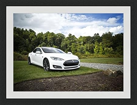 Behind The Glass White Tesla Model S Framed Mounted 40x30cm Black Frame